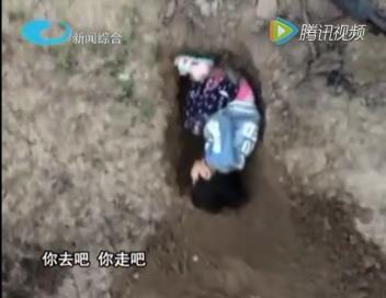 男子发给妻子的视频中,女儿被放进一个坑里,准备随时埋了。